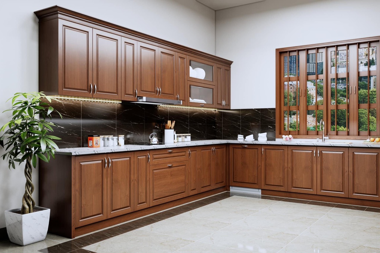 Tủ bếp gỗ sồi Nga SN01